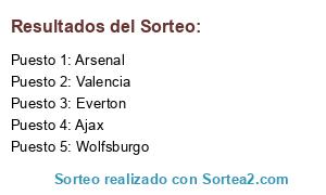 Lista de participantes: Valencia, Ajax, Arsenal, Everton, Wolfsburgo.