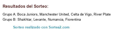 Lista de participantes: Manchester United, Fiorentina, Celta de Vigo, River Plate, Boca Juniors, Numancia, Levante, Shakhtar.