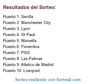 Lista de participantes: Las Palmas, Sevilla, Marsella, St Pauli, PSG, Atletico de Madrid, Manchester City, Liverpool, Fiorentina, Lyon.