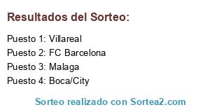 Lista de participantes: Villareal, FC Barcelona, Boca/City, Malaga.