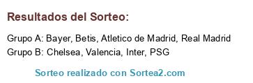 Lista de participantes: Inter, Bayer, PSG, Real Madrid, Atletico de Madrid, Chelsea, Betis, Valencia.