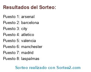 Lista de participantes: laspalmas, manchester, arsenal, atletico, madrid, city, valencia, barcelona.