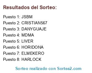 Lista de participantes: ELMEKERO, MDMA, JSBM, HARLOCK, DANYGUAJE, HORIDONA, LIVER, CRISTIAN567.