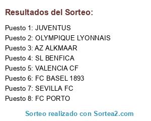 Lista de participantes: AZ ALKMAAR, SL BENFICA, OLYMPIQUE LYONNAIS, JUVENTUS, FC BASEL 1893, VALENCIA CF, FC PORTO, SEVILLA FC.
