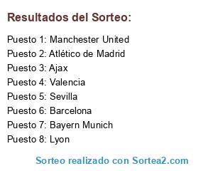 Lista de participantes: Manchester United, Barcelona, Valencia, Lyon, Bayern Munich, Sevilla, Ajax, Atlético de Madrid.