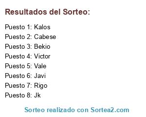 Lista de participantes: Rigo, Jk, Javi, Victor, Cabese, Kalos, Vale, Bekio.