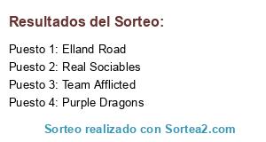 Lista de participantes: Team Afflicted, Elland Road, Real Sociables, Purple Dragons.
