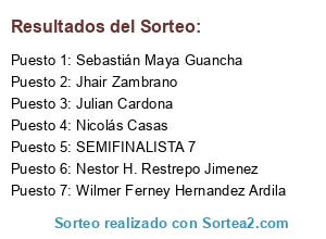 Lista de participantes: 1. Luis Medina, 2. Dani Polanco HL, 3. Wilmer Ferney Hernandez Ardila, 4. John J. Mogollon, 5. Julian Cardona, 6. Juan Diego Jaramillo, 7. Fer Walteros, 8. Cesar Daniel Walteros Velasquez, 9. Daniel Gonzalez, 10. Diego Fernando Murillo, 11. Fercho Jara, 12. David Ramirez Cardona, 13. Giovanni Gomez, 14. Jota J González Sánchez, 15. Carlos Eduardo Fiquitiva Londoño, 16. Will Cardenas, 17. Daniel Cetina, 18. Jhair Zambrano, 19. Nestor H. Restrepo Jimenez, 20. Tavo Taborda, 21. Mateo Guataquira, 22. Nicolás Casas, 23. Nicolás Rodriguez, 24. Sebastian Vargas, 25. Jeferson Andres Tovar, 26. Alejandro Morales Escobar, 27. Sebastián Maya Guancha, 28. Juan Sánchez R.