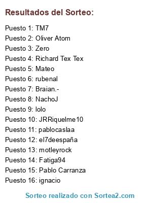 Resultados del sorteo: