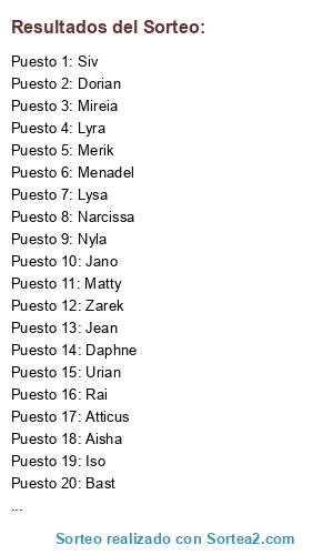 Resultados del sorteo: