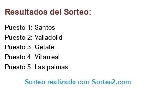 Lista de participantes: Valladolid, Villarreal, Santos, Getafe, Las palmas.