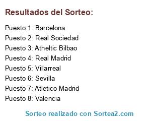 Lista de participantes: Atheltic Bilbao, Sevilla, Barcelona, Real Sociedad, Real Madrid, Villarreal, Valencia, Atletico Madrid.