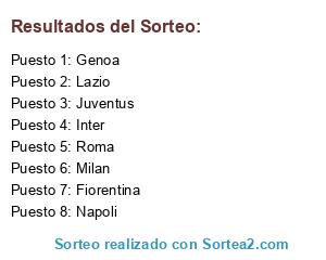Lista de participantes: Genoa, Lazio, Milan, Juventus, Inter, Roma, Fiorentina, Napoli.