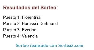 Lista de participantes: Valencia, Everton, Fiorentina, Borussia Dortmund.