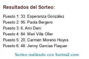 - 1 entrada doble para "Una aventura helada" en Sala Dante el 14 de noviembre a las 19:30h. Dos ganadores y 4 suplentes por orden de sorteo.: 33. Esperanza González