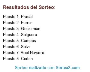 Lista de participantes: Salvi, Pradal, Cerbin, Campos, Ariel Navarro, Salguero, Griezzman, Furrer.