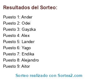 Lista de participantes: Alex, Alejandro, Ander, Gayzka, Endika, Lander, Odei, Yago, Aitor.