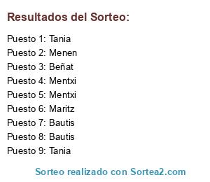Lista de participantes: Bautis (9), Beñat (9), Dimi (9), Esti (9), Kuiki (9), Maritz (9), Menen (9), Mentxi (9), Rrona (9), Tania (9).