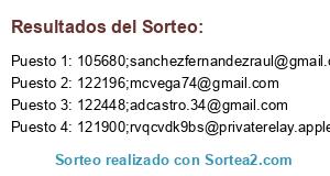 - Puesto 3: 122448;adcastro.34@gmail.com