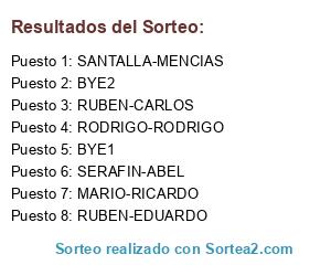 Lista de participantes: RUBEN-CARLOS, BYE1, SANTALLA-MENCIAS, SERAFIN-ABEL, RUBEN-EDUARDO, BYE2, MARIO-RICARDO, RODRIGO-RODRIGO.