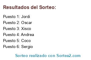 Lista de participantes: Xisco, Oscar, Coco, Sergio, Andrea, Jordi.