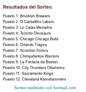 Lista de participantes: Sacramento Kings, Chicago Chicago Bulls, Cleveland Kamehammers, City Thunders Oklahoma, Orlando Tragics, Brooklyn Brewers, Chimpafentos Warriors, O Carballiño Lakers, La Fontana de Boston, Lo Catas Memphis, Scranton Sonics, Toronto Dinosaurs.