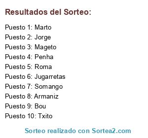 Lista de participantes: Bou, Penha, Roma, Txito, Mageto, Armaniz, Somango, Jorge, Marto, Jugarretas.