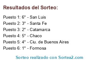 Lista de participantes: 1° - Formosa, 2° - Catamarca, 3° - Santa Fe, 4° - Ciu. de Buenos Aires, 5° - Chaco, 6° - San Luis.