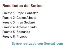Lista de participantes: Carlos Alberto, Fernando, Pepe González, Antonio criado, Fran Sedano, Francis.