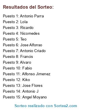 Resultados del sorteo: