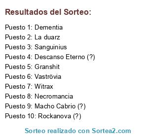 Lista de participantes: Dementia, Vaströvia, Granshit, La duarz, Sanguinius, Witrax, Necromancia, Rockanova (?), Macho Cabrio (?), Descanso Eterno (?).
