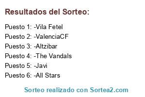 Lista de participantes: -Altzibar, -The Vandals, -Vila Fetel, -Javi, -ValenciaCF, -All Stars.