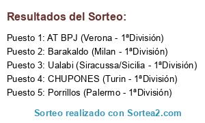 Lista de participantes: Porrillos (Palermo - 1ªDivisión), CHUPONES (Turin - 1ªDivisión), AT BPJ (Verona - 1ªDivisión), Ualabi (Siracussa/Sicilia - 1ªDivisión), Barakaldo (Milan - 1ªDivisión).