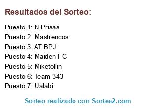 Lista de participantes: Maiden FC, Mastrencos, Miketollin, Team 343, Ualabi, AT BPJ, N.Prisas.