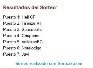 Lista de participantes: Notelodigo, Chupones, VallekasFC, Spaceballs, Hell CF, Javi, Firenze Vil.