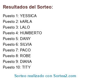 Lista de participantes: TITY, ROBE, DANY, kARLA, SILVIA, HUMBERTO, DIANA, LALO, PACO, YESSICA.