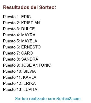 Resultados del sorteo: