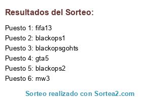 Lista de participantes: blackops2, fifa13, blackops1, gta5, blackopsgohts, mw3.