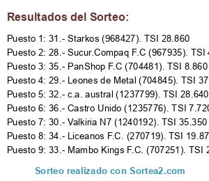 Resultados del sorteo: