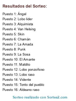 Resultados del sorteo: