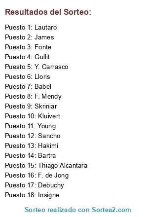 Lista de participantes: Romelu Lukaku, Matt Hummels, Jack Wilshere, Jesé Rodríguez, Santi Cazorla, Daniel Carvajal, Bruno Soriano, Seydou Doumbia, Christian Atsu, Manuel Neuer, Matthias Ginter, Loris Karius, Arthur Masuaku, Frank Ribery, Gareth Bale, Mario Gotze, Ismaiy Gonçalves, Karim Bellarabi, Marquinhos.
