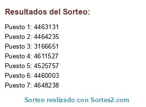 Resultados del sorteo: