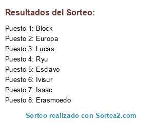 Lista de participantes: Isaac, Ryu, Lucas, Ivisur, Block, Erasmoedo, Esclavo, Europa.