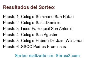 Lista de participantes: Liceo Parroquial San Antonio, Colegio San Agustin, Colegio Saint Dominic, SSCC Padres Franceses, Colegio Seminario San Rafael, Colegio Hebreo Dr. Jaim Weitzman.