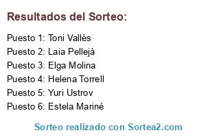 Lista de participantes: Estela Mariné, Elga Molina, Laia Pellejà, Helena Torrell, Yuri Ustrov, Toni Vallès.