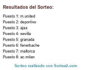 Lista de participantes: sevilla, deportivo, ac.milan, fenerbache, m.united, granada, ajax, mallorca.