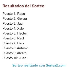 Lista de participantes: Dani, Xalo, Juan, Raul, Javi, Rapu, Gonza, Antonio, Hector, Alvaro.