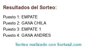 Lista de participantes: GANA ANDRES, EMPATE, GANA CHILA, EMPATE 1.