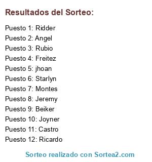 Resultados del sorteo:
