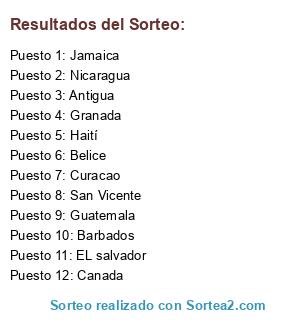 Lista de participantes: Nicaragua, San Vicente, EL salvador, Canada, Guatemala, Curacao, Antigua, Barbados, Belice, Granada, Jamaica, Haití.